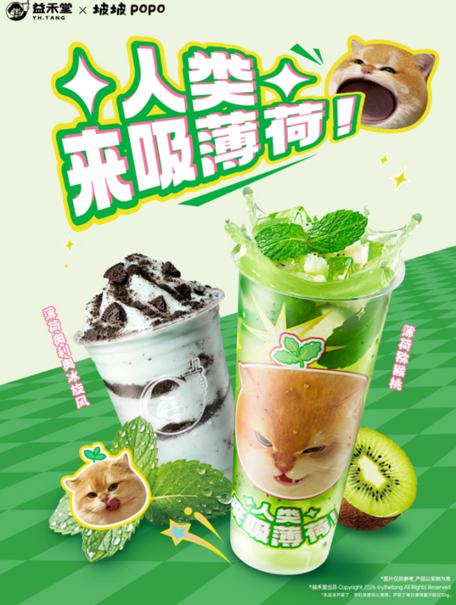 春天怎样更放松?益禾堂精准捕捉大众对情绪价值的追求,巧妙将“猫吸猫薄荷会上头”的愉悦感,与春日渴望松弛、释放压力的心理需求联结;而这份从味蕾到身心的“上头”体验,益禾堂选择让“薄荷家族”承接——从经典薄荷奶绿到清爽的薄荷柠檬水,品牌成功打造了多款现象级薄荷单品,构建起了深厚的品类“护城河”。今春,薄荷家族在产品与玩法上双重升级,旨在将“清爽”从味觉体验,拓展为可玩、可分享的春日社交符号。
